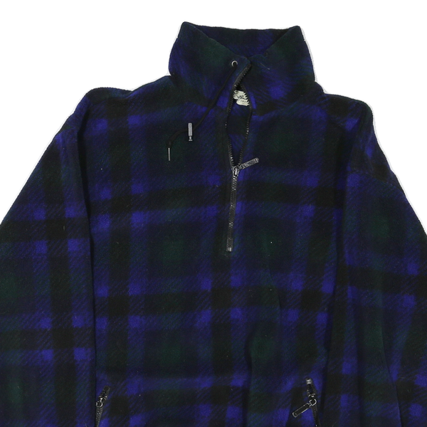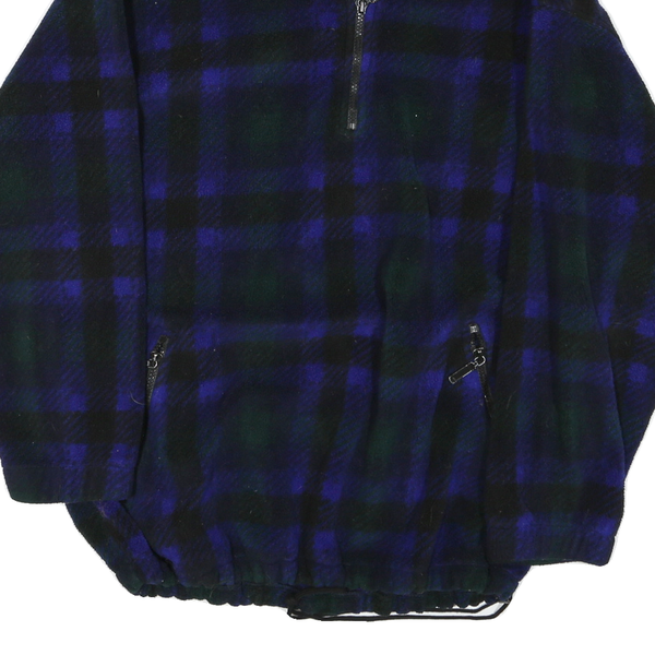 EDDIE BAUER Womens Blue & Green Check Fleece Jacket L Polyester Zip