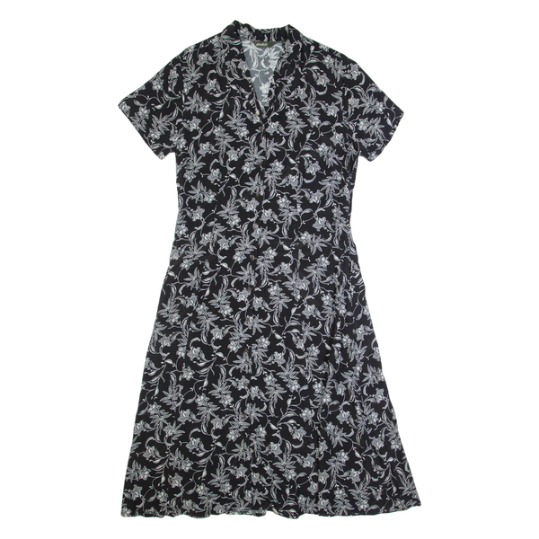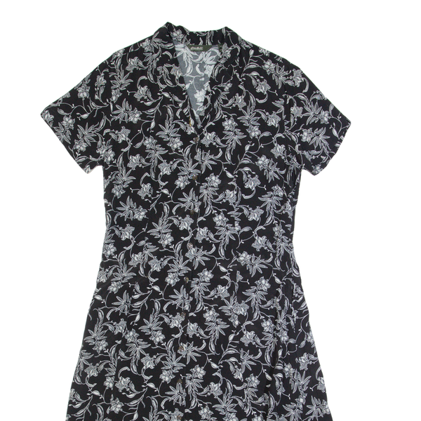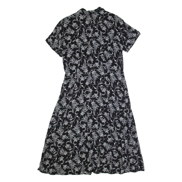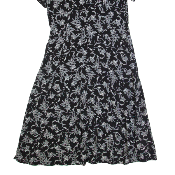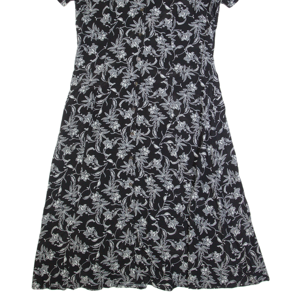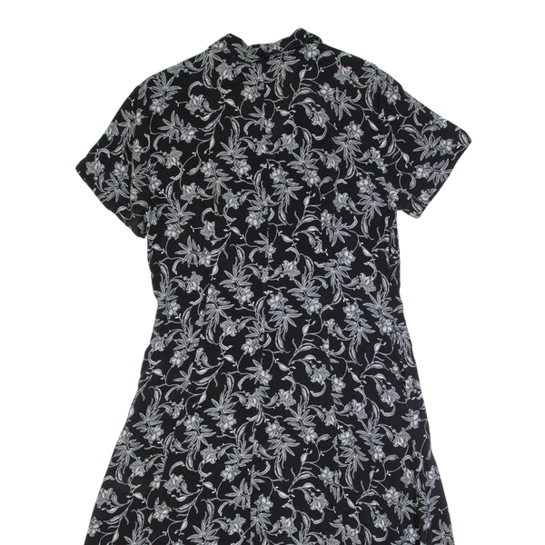 EDDIE BAUER Womens Tea Dress Black 90s Floral Short Sleeve Long M