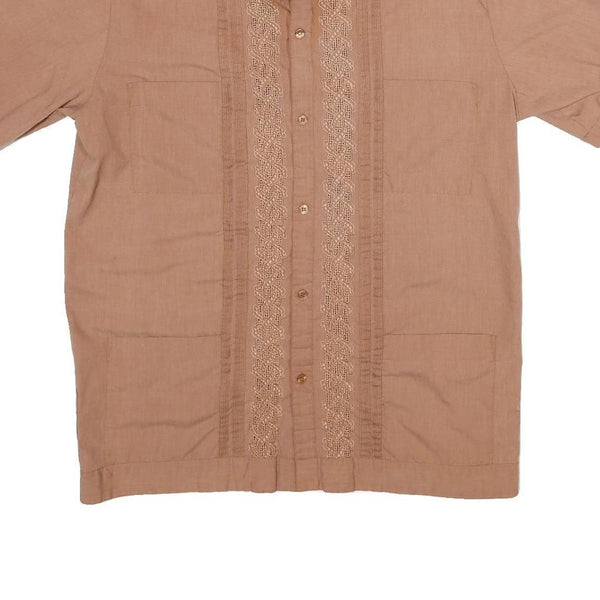 EL NORTENO Mens Brown Short Sleeve Shirt M Embroidered Front Casual