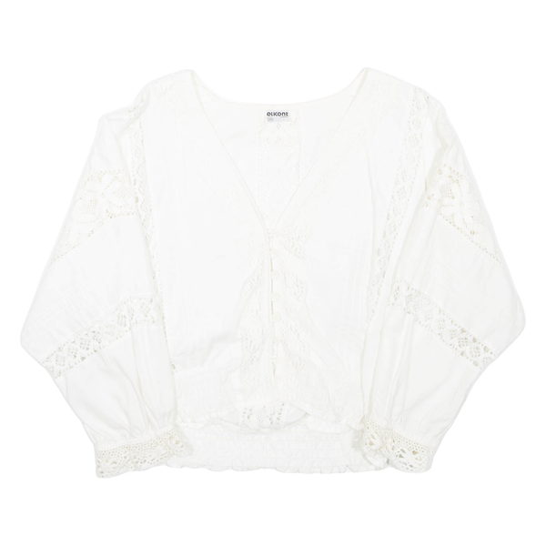 ELKONT Womens Cropped Blouse White V-Neck Long Sleeve M