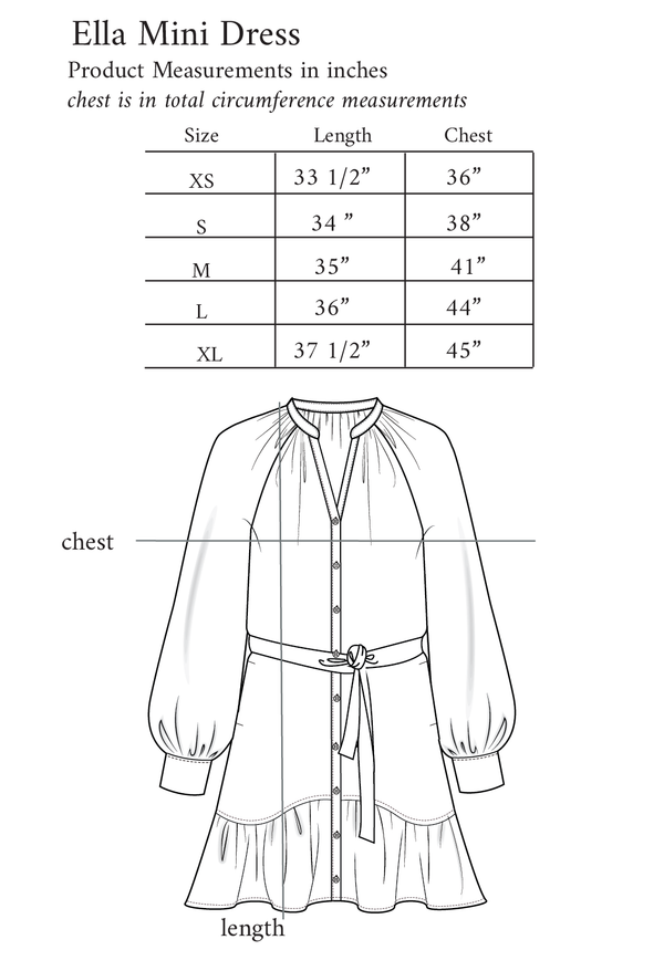 Sophisticated and flirty, the Ella Mini Dress is the perfect sustainable dress. Featuring a classic button front with real shell buttons, pockets, and crafted in a soft, lightweight sustainable cotton print. Ella comes with a removable sash to cinch your waist or you can style her relaxed and loose.