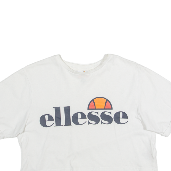 ELLESSE Cropped Oversized Womens T-Shirt White UK 8