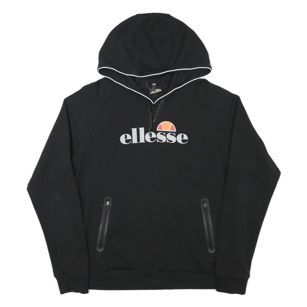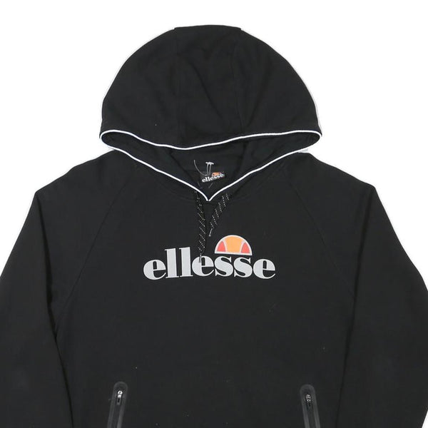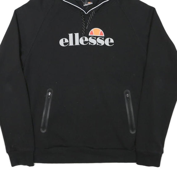 ELLESSE Mens Black Hoodie M Cotton Blend Pullover Hooded Sweatshirt Logo Print