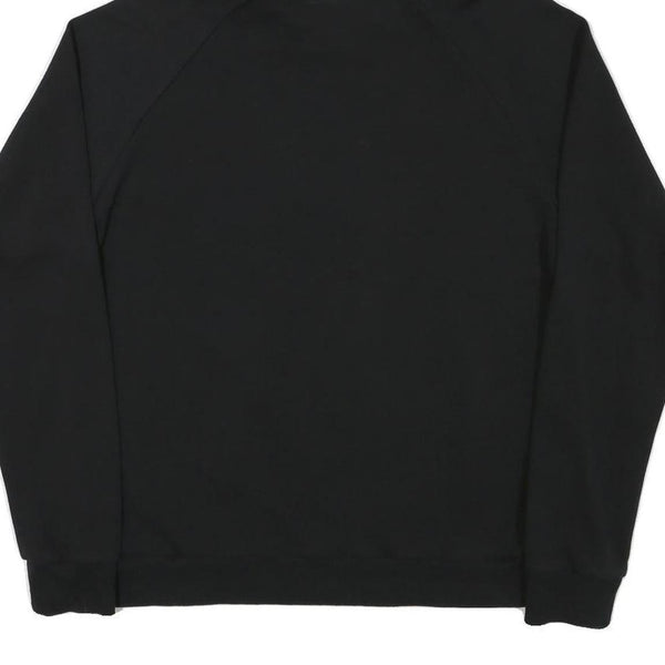 This pullover style sweatshirt includes long raglan sleeves and secure zippered front pockets for convenience. Its ribbed cuffs and hem provide shape and comfort. The back is plain black, making it a versatile layering piece for casual wear or athleisure styling. Ideal for everyday wear and cool weather.