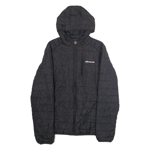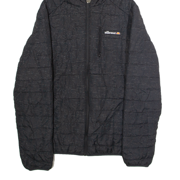 ELLESSE Mens Puffer Jacket Black Hooded L