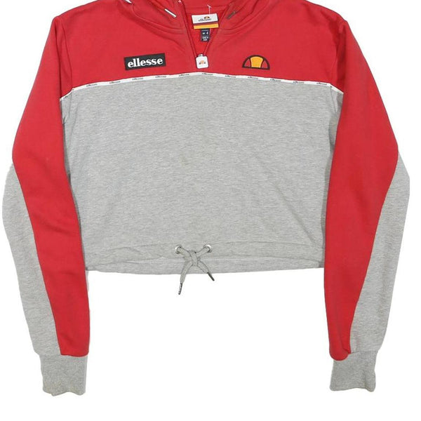 ELLESSE Womens Red & Grey Cropped Hoodie UK 4 Cotton Blend Casual Sportswear