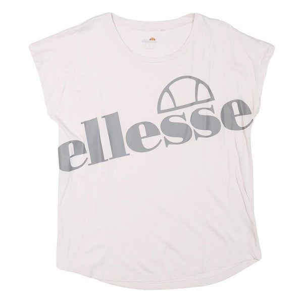 Ellesse womens white grey logo graphic t-shirt uk 12 short sleeve crew neck
