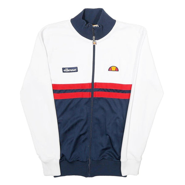 ELLESSE Womens White & Navy Colourblock Track Jacket UK 6 Cotton Blend Zip