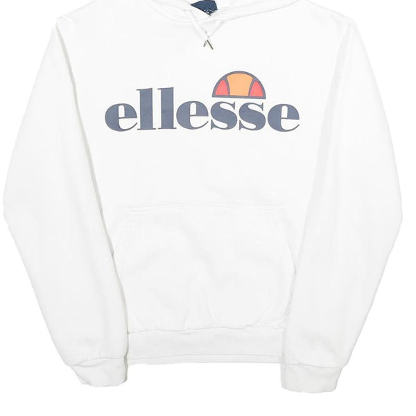 ELLESSE Womens White Pullover Hoodie UK 8 Cotton Blend Logo Sweatshirt