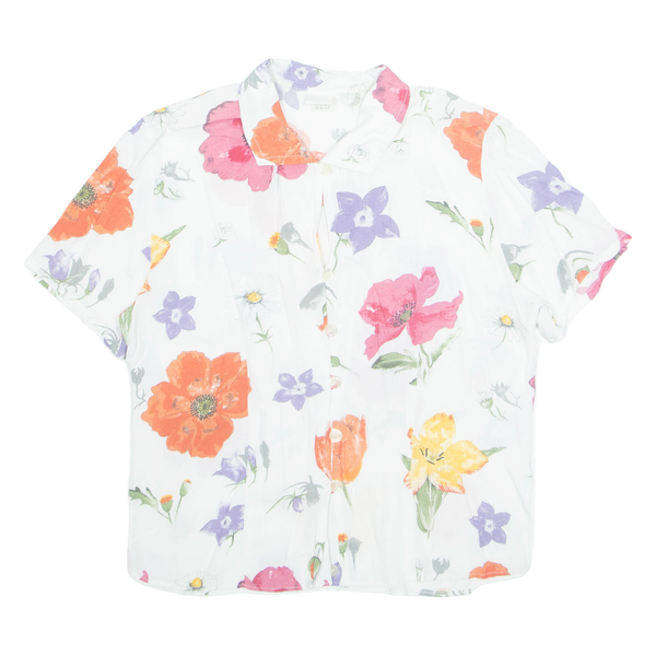 ELTON Womens Printed Shirt White Collared Viscose Floral M