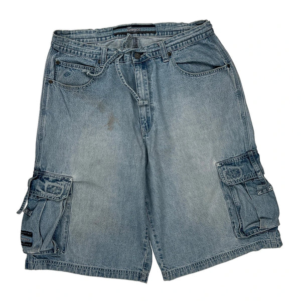 Light Wash Cargo Shorts With Some Visible Marks On The Front.