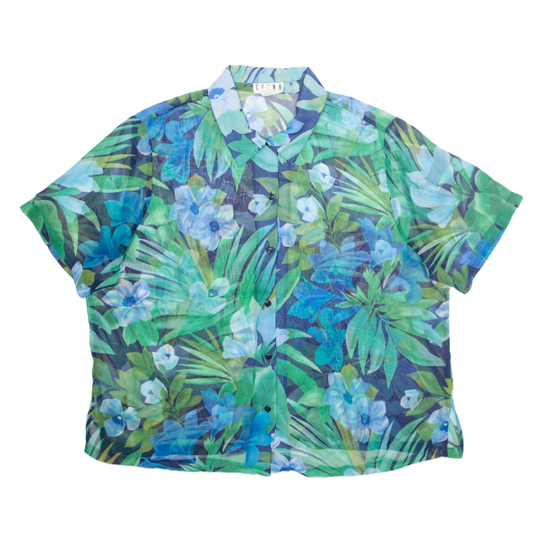 ERENA Womens Printed Blouse Blue Collared Floral 2XL