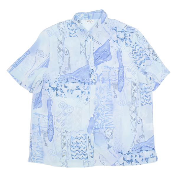 ERFO Womens Printed Shirt Blue Collared Crazy Pattern L