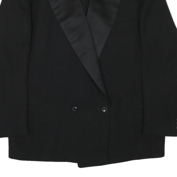 ESKA Womens Black Wool Blend Blazer Jacket L Satin Lapel Button Closure Tailored