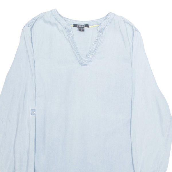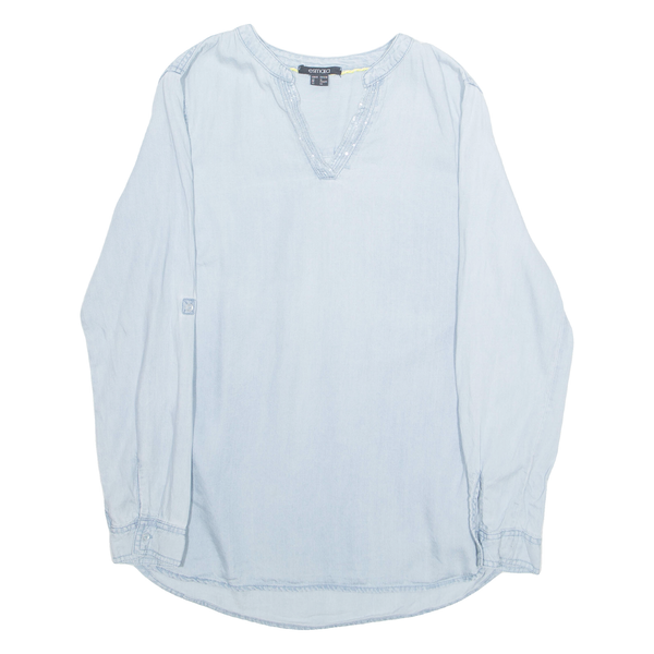 ESMARA Womens Blouse Blue V-Neck Long Sleeve M