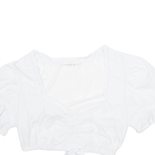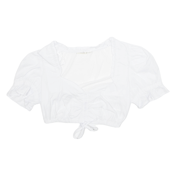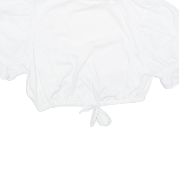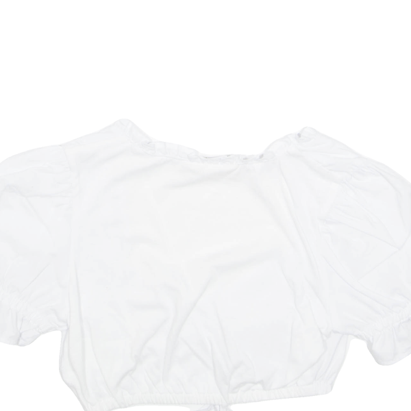 ESMARA Womens Cropped Blouse White V-Neck Puff Sleeve UK 10