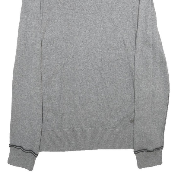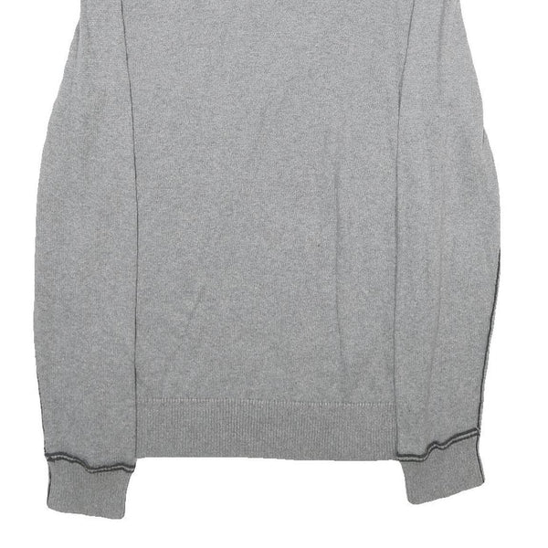 This men's jumper from Esprit features a classic grey colour with subtle dark grey edging around the V-neckline and cuffs. The design is simple and elegant with a plain knit finish, perfect for layering or standalone wear. The Esprit label inside confirms authenticity.