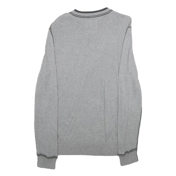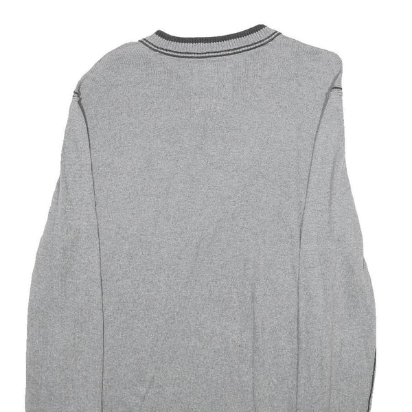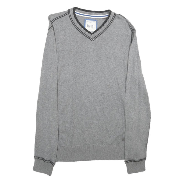 ESPRIT Mens Grey Plain Cotton Jumper V-Neck Basic Knit L Casual Comfortable