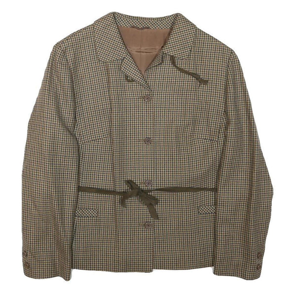 EUSON Womens Brown Wool Button Jacket M Houndstooth Classic Tailored