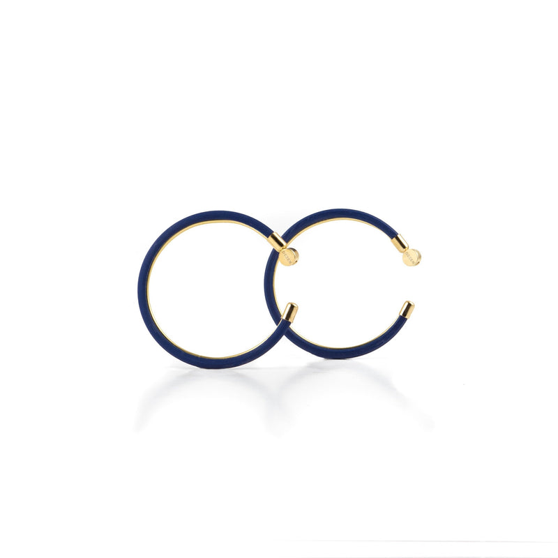 Radiate serenity everywhere you go with our Evening Blue Inner Beauty Grand hoop earrings. Our new take on the basics represents the Inner Beauty in all of us. Hidden inside of the colorful Grand hoop is a gold plated lining for everyone keen on hidden details. Gender-neutral, sassy, feather light.
