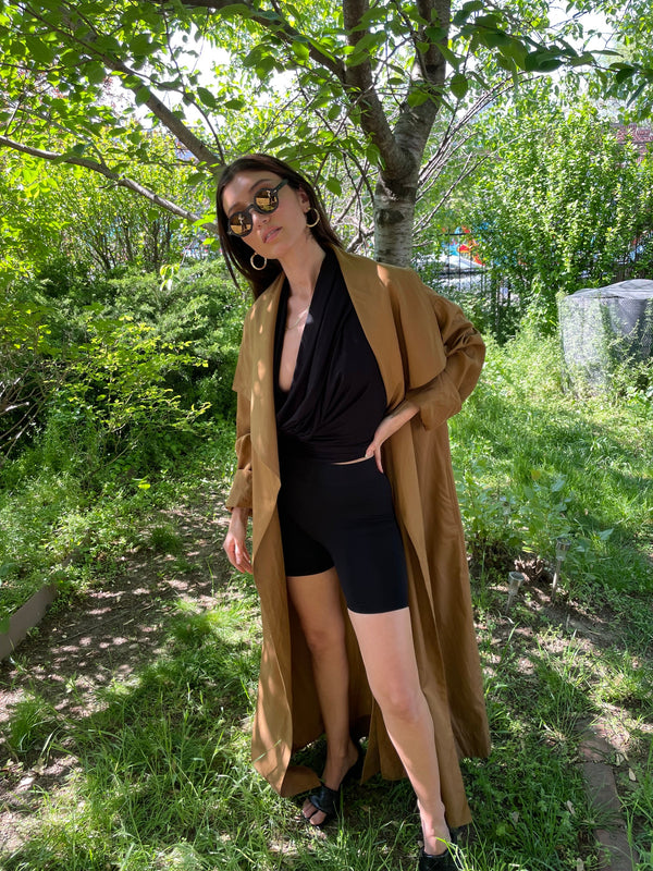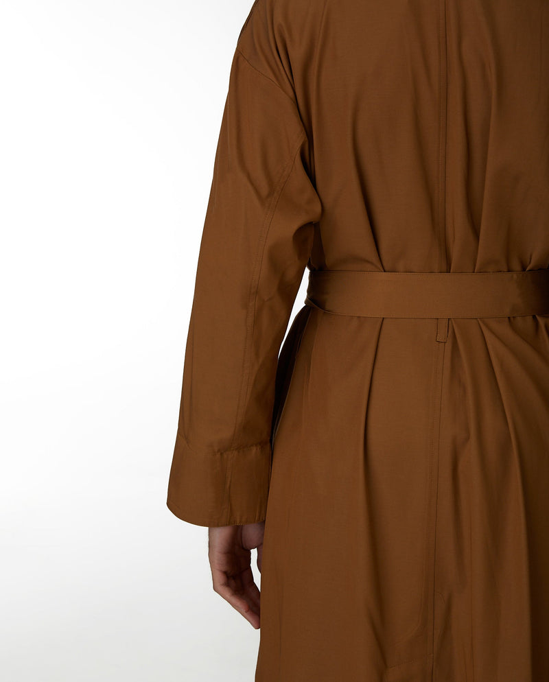 Soft comfort meets timeless structure in our classic trench coat. Made with a tencel/organic cotton twill blend imported from Japan, this sustainable coat drapes from the body with effortless fashion. Complete with a removable belt and oversized collar, you can style this versatile coat however you wish.