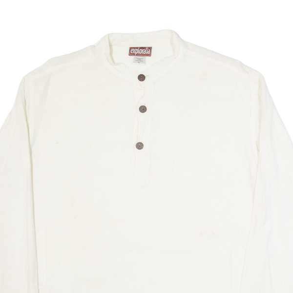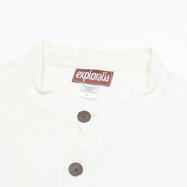 EXPLORALIA Womens Shirt Cream Button Neck Long Sleeve L