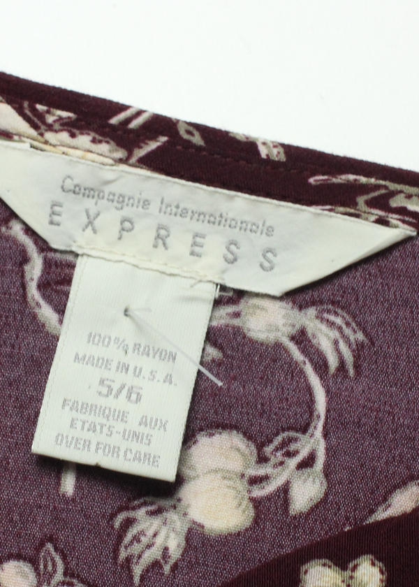 EXPRESS Pleated Womens Maxi Dress Maroon Floral Short Sleeve Long M
