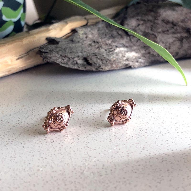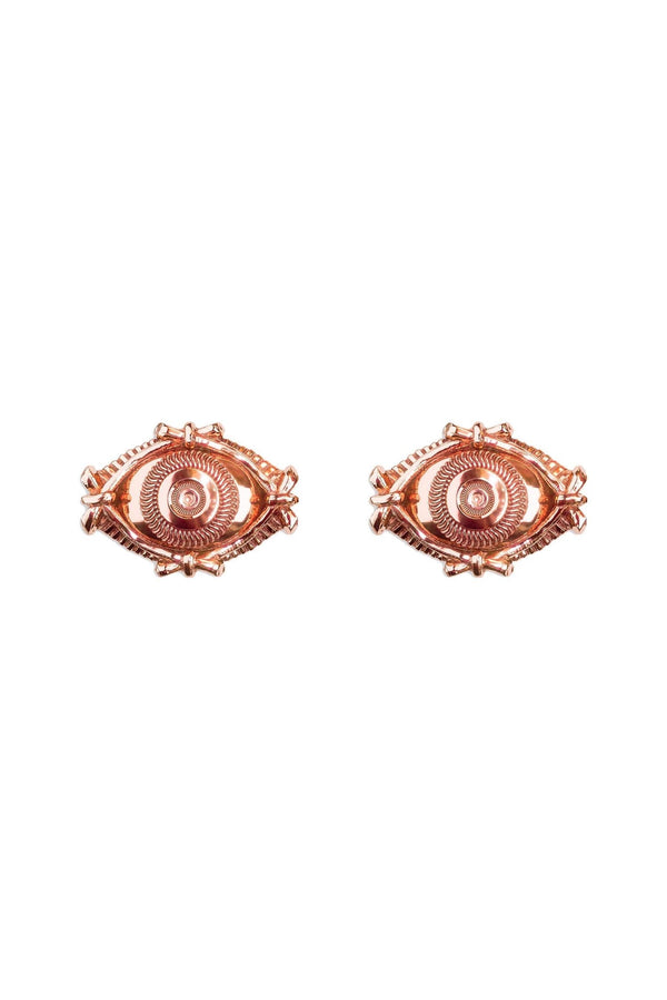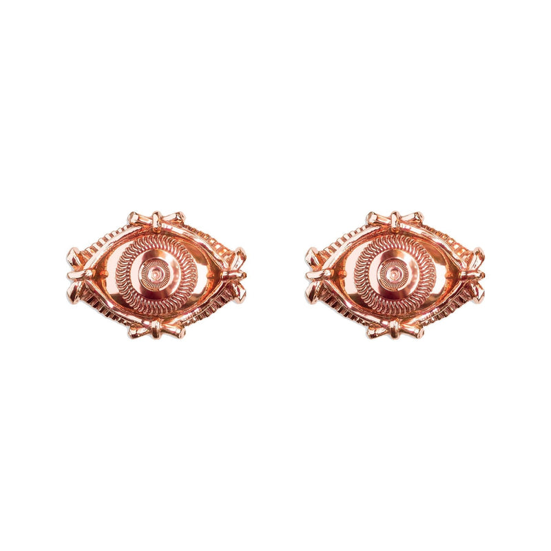 Our Eye rose gold stud earrings are destined to be your new favorite way to complete your look. Wear these as a simple accent to your favorite t shirt and jean or use it in a second piercing paired up with a hoop for an edgier look.