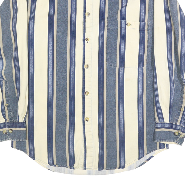 FADED GLORY Mens Blue & Cream Striped Shirt S Cotton Long Sleeve Button Down