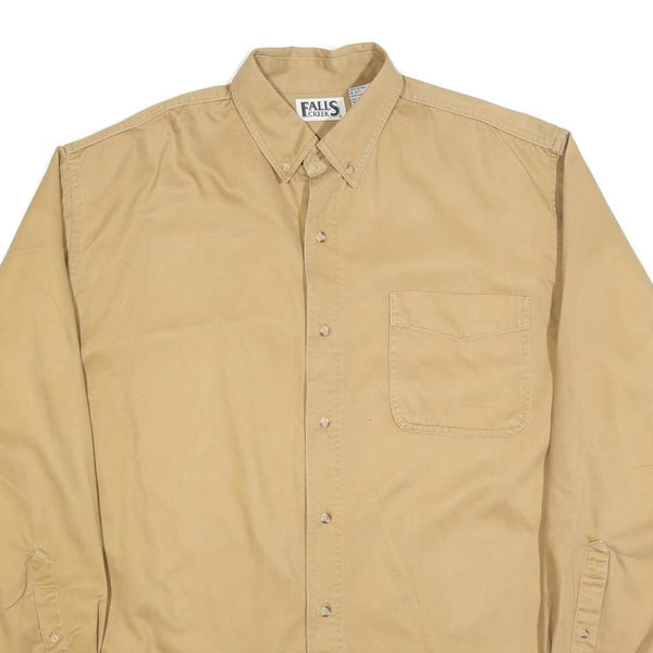 FALLS CREEK Mens Beige Cotton Shirt L Button Down Long Sleeve Classic Fit