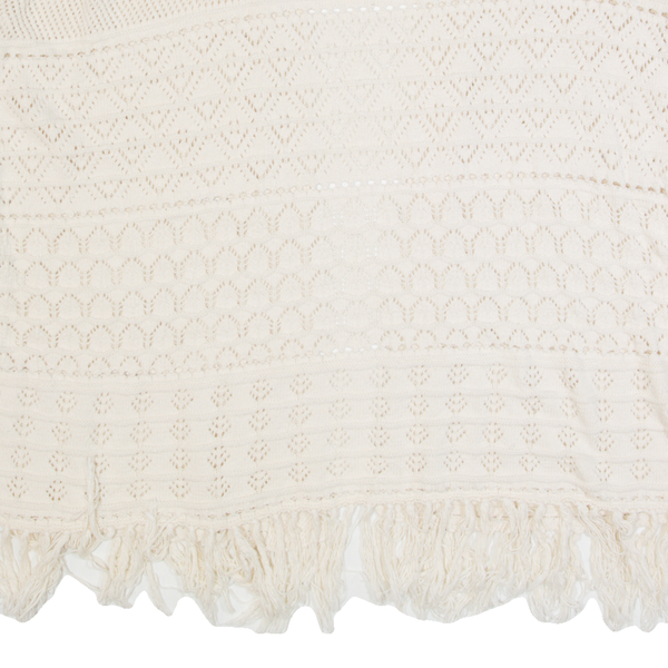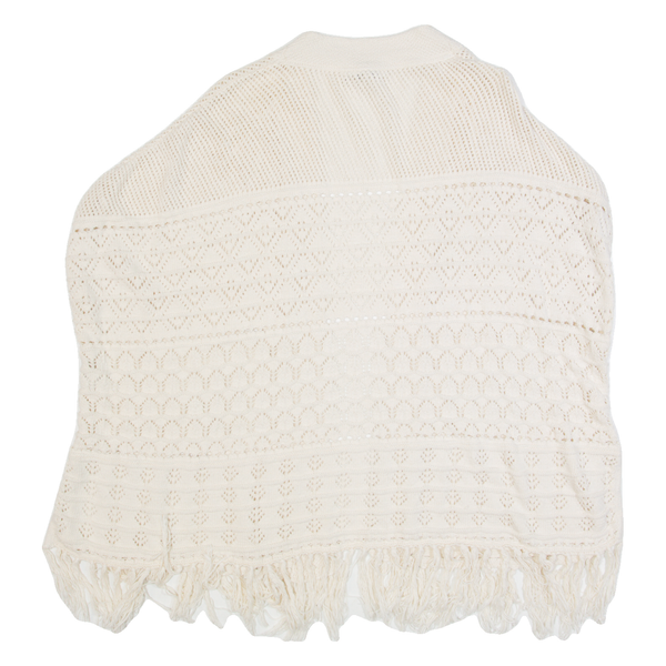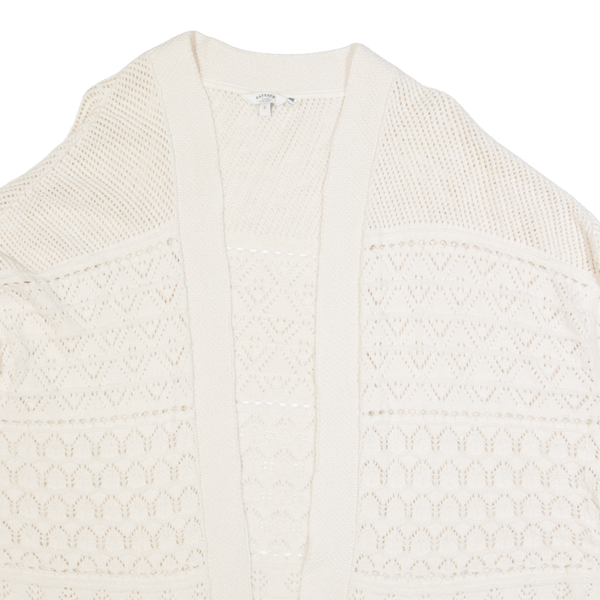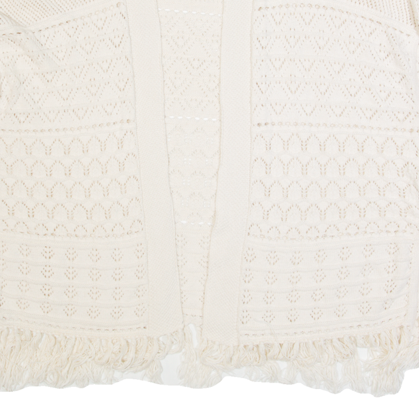FAT FACE Tassel Womens Cardigan Cream Open Knit Sleeveless S