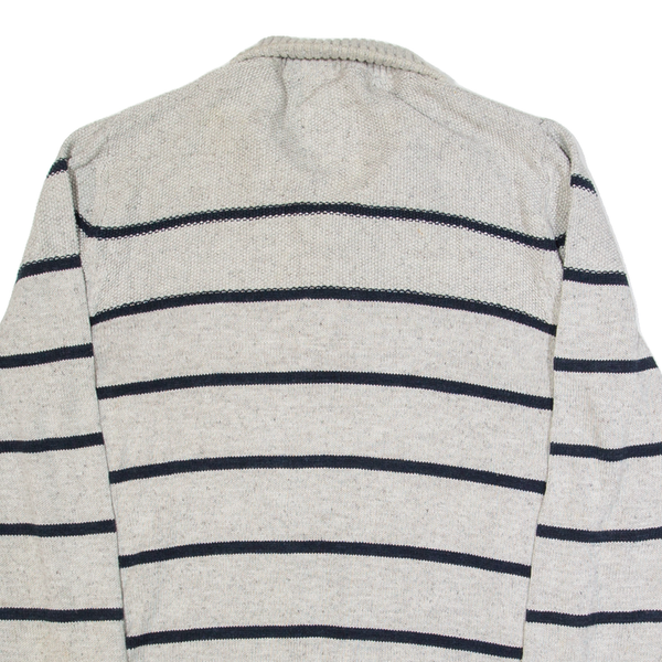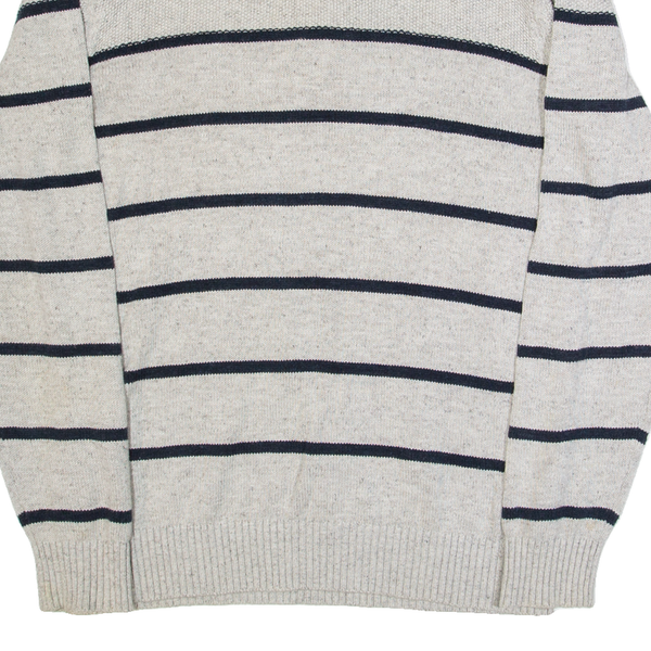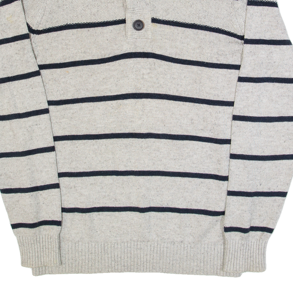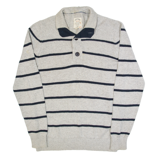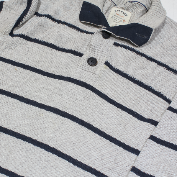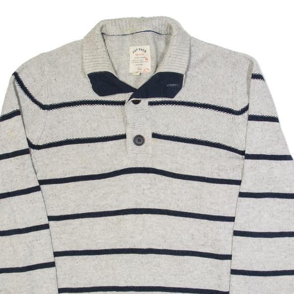 FAT FACE Womens Patterned Jumper Grey Striped Button Neck Tight Knit S