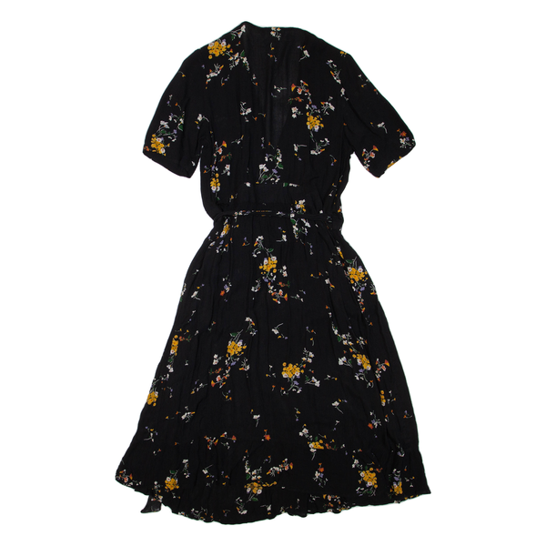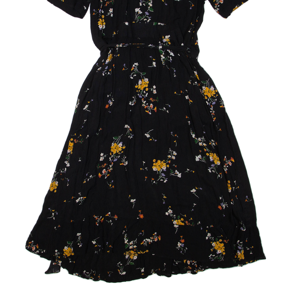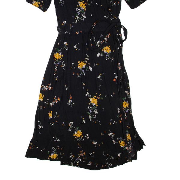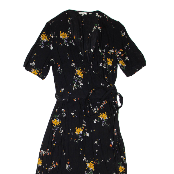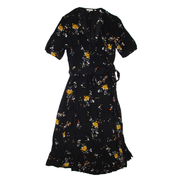 FAT FACE Womens Wrap Dress Black Floral Short Sleeve Knee Length UK 8