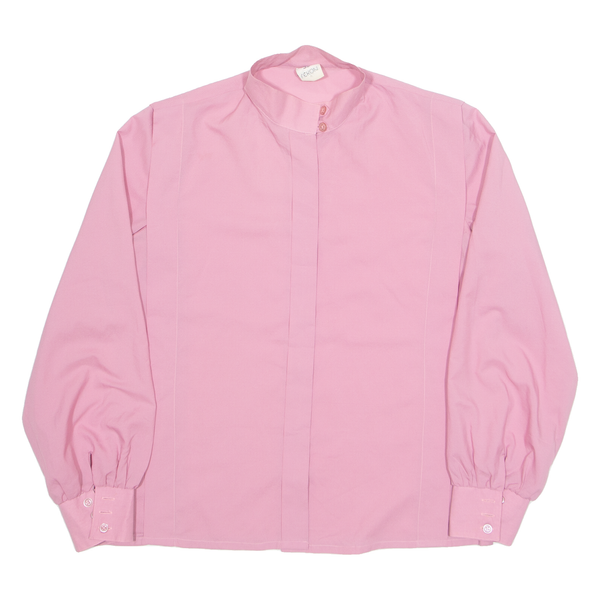 FEKON Womens Shirt Pink Button Neck Long Sleeve 90s M