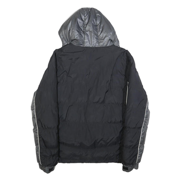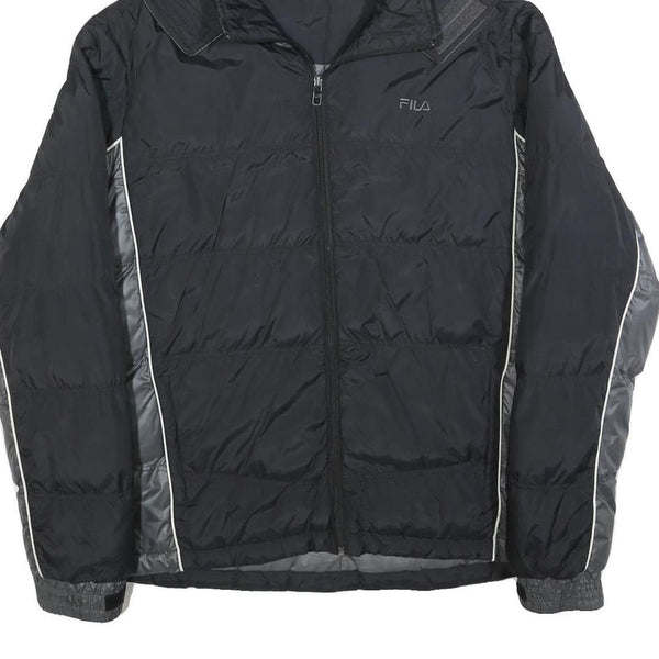 FILA Mens Black & Grey Puffer Jacket XL Polyester Zip Hooded Plain Sportswear