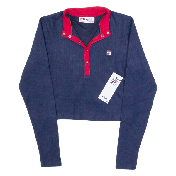 FILA Womens Cropped Top Blue 1/4 Zip Long Sleeve XS