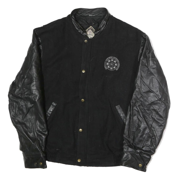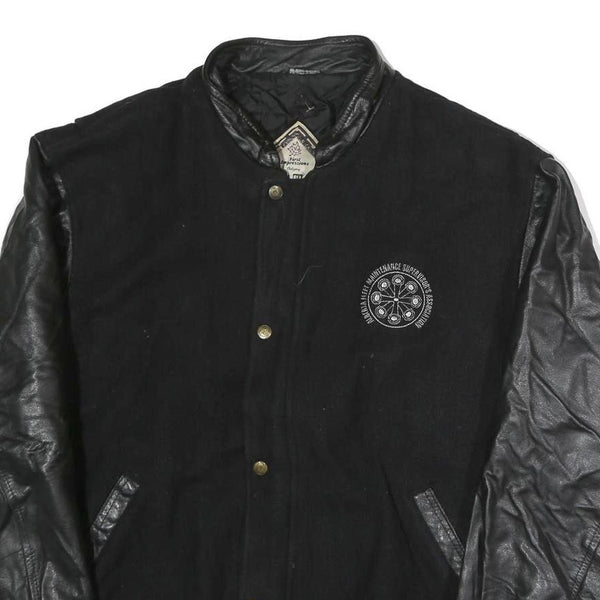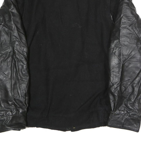 FIRST IMPRESSIONS Mens Black & Leather Sleeves Button Jacket XL Cotton Plain