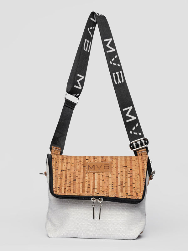 Introducing the versatile Double-Sided Crossbody Flop Bag, expertly crafted with sustainable and durable materials like Portuguese cork. This 100% vegan and cruelty-free bag features a stunning combination of cork and REACH (respect the environment) canvas, perfect for the modern, environmentally-conscious individual.