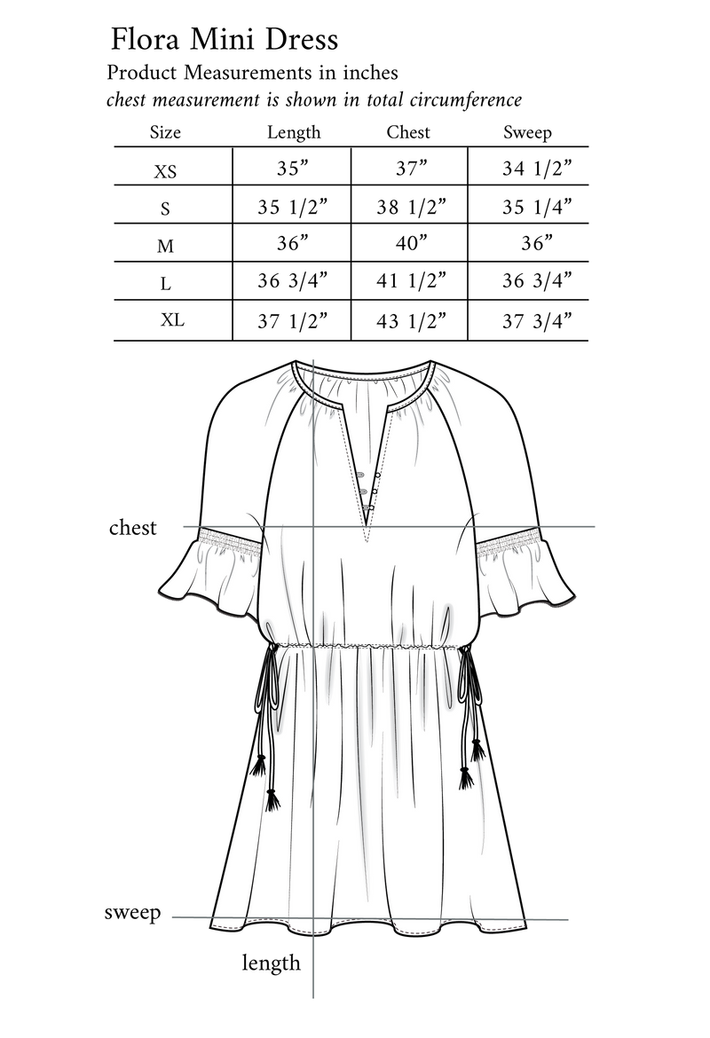 Meet Flora, the flirty mini dress that exudes luxe bohemian chic vibes. Wear her loose for an easy, casual look with sandals or cinch her at the waist to add some shape. Her ruffle sleeve, open neckline, and tassel details add a feminine touch. Flora's lightweight and flowy sustainable georgette fabric even features an intricate border design. Style her from day to night all spring and summer long.
