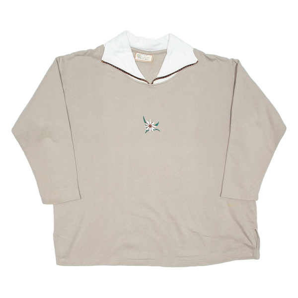 Flowers Womens Sweatshirt Beige Collared UK 24