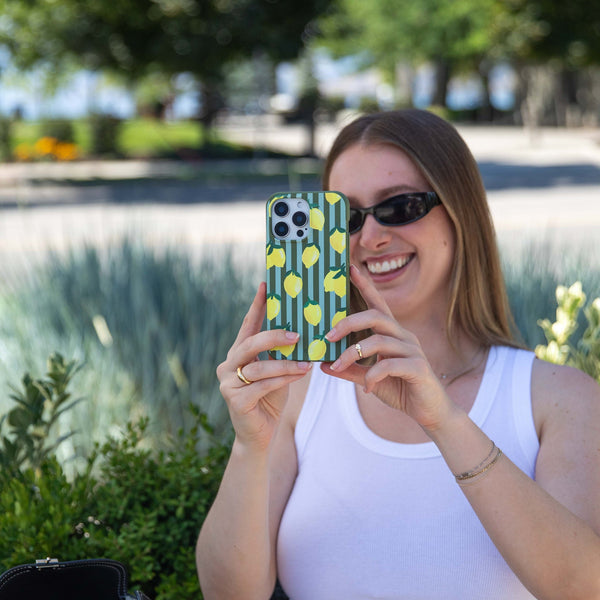 The Zesty Lines Phone Case brings major citrus energy with bold yellow lemons popping against playful green stripes. It’s the perfect pick-me-up for your everyday carry—refreshing, flirty, and full of sunshine. Warning: may cause spontaneous smiles and lemonade cravings.