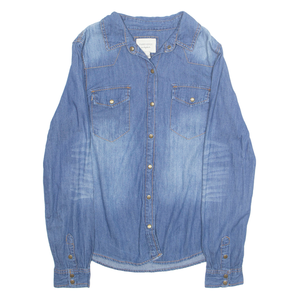 FOREVER 21 Womens Blouse Blue Collared Long Sleeve L