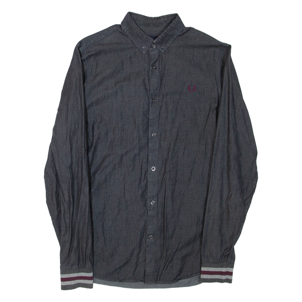 Home FRED PERRY Mens Plain Shirt Grey Long Sleeve S