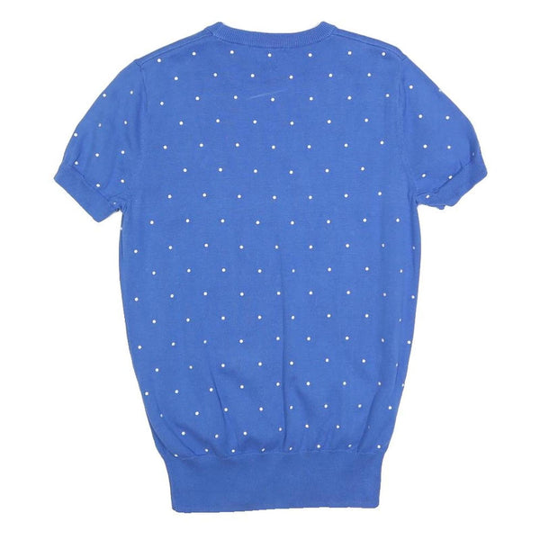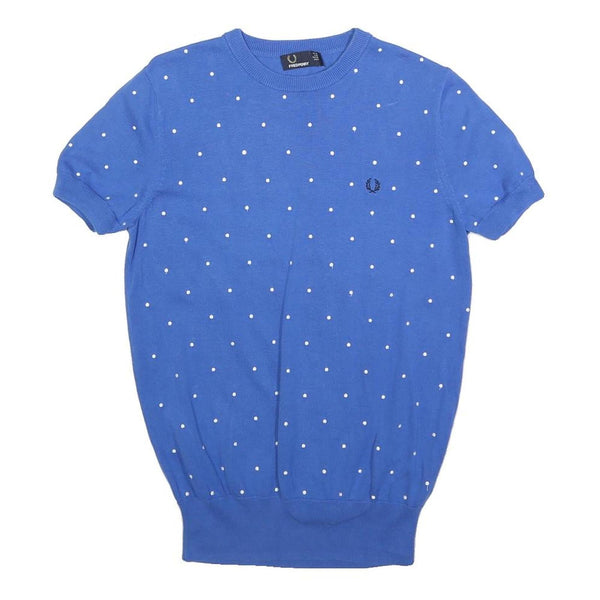 FRED PERRY Womens Blue Polka Dot Patterned Crew Neck Basic Knit UK 10 Cotton