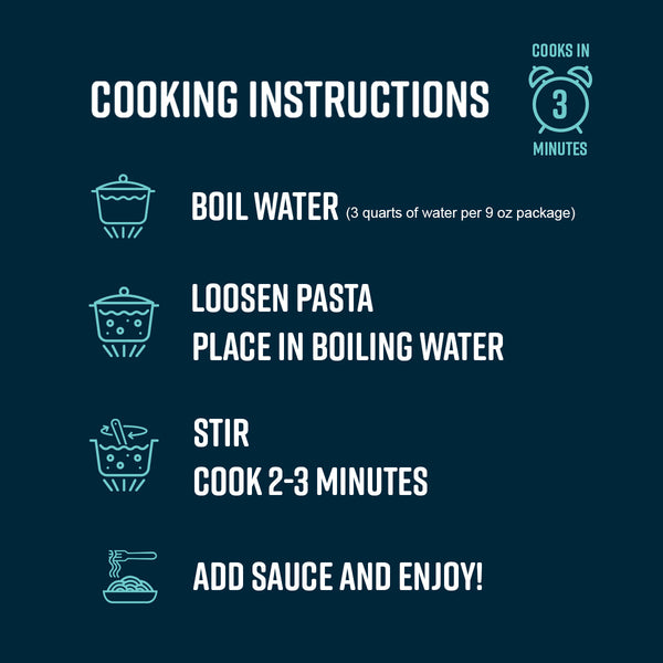 ❄️ Our fresh, gluten-free pasta is perishable and should be placed in your refrigerator (for up to 5 days) or your freezer (for up to 1 year after the produced on date shown on pack) immediately upon arrival. When cooking from frozen, no need to thaw, just place directly in boiling water and stir to loosen.