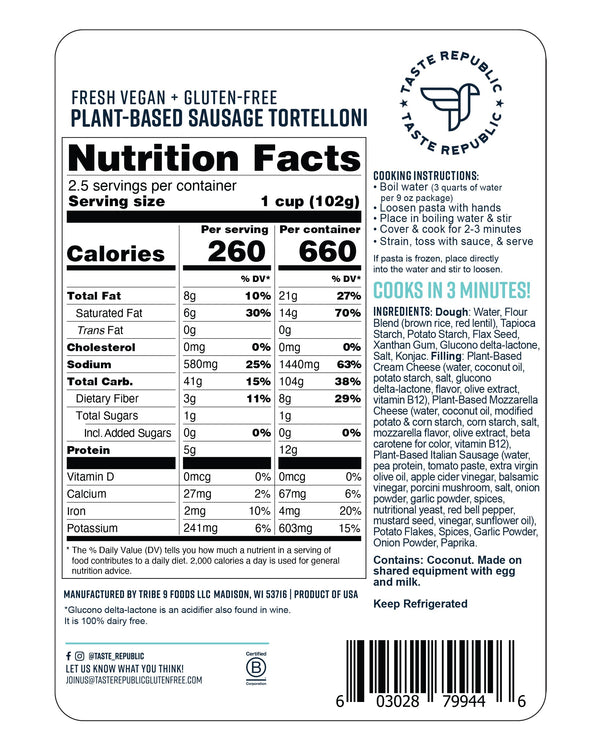 Enjoy our mouthwatering Plant-Based Sausage Tortelloni – a culinary delight that caters to your taste buds and your commitment to a compassionate lifestyle!