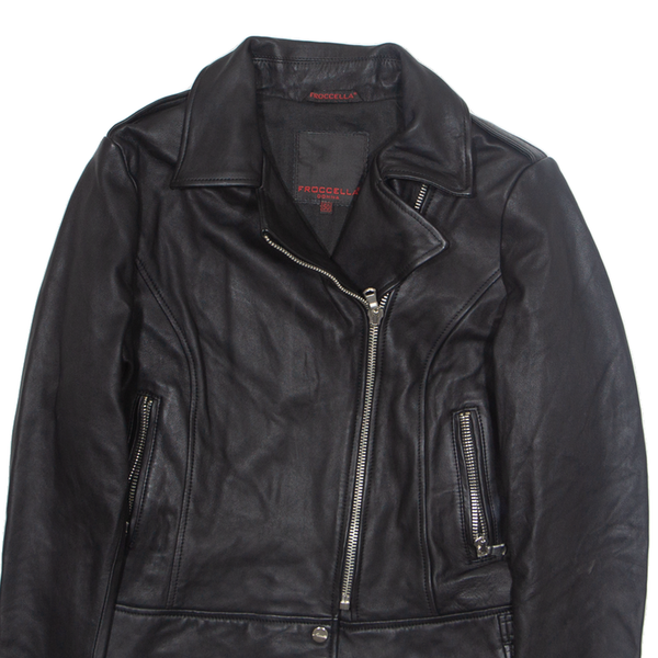FROCCELLA Womens Biker Jacket Black Faux Leather M