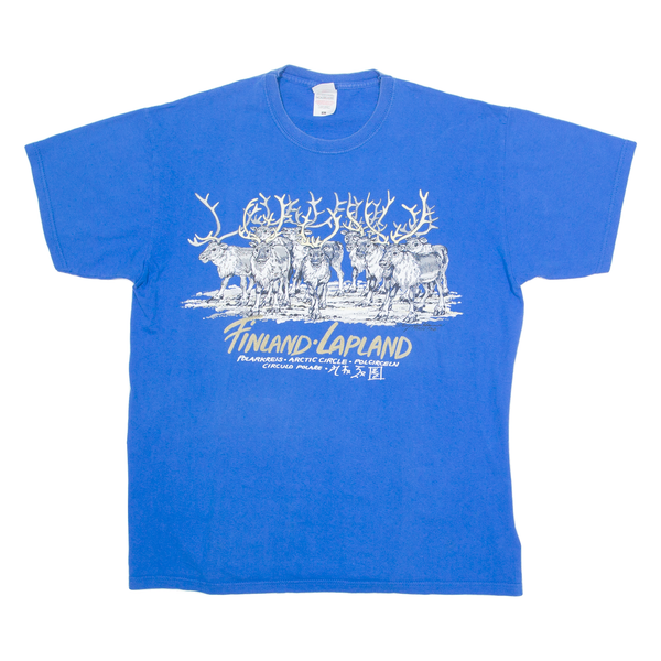 FRUIT OF THE LOOM Finland Lapland Reindeer Mens T-Shirt Blue Crew Neck L