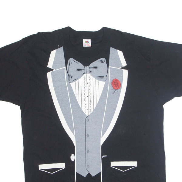 FRUIT OF THE LOOM Formal Not Formal Suit Print Mens T-Shirt Black XL