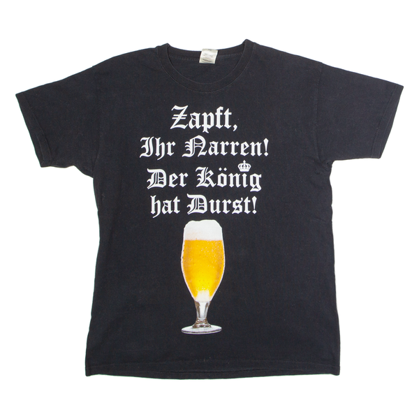 FRUIT OF THE LOOM German Text Beer Mens T-Shirt Black Crew Neck L